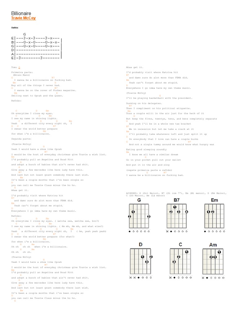 Billionaire Travie Mccoy Cifra Club - Aprende a tocar el cifrado de billionaire (bruno mars) en cifra club.