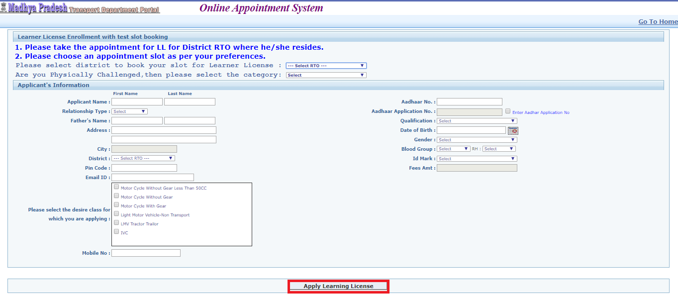 Rto India Driving Test Slot Booking Problem - After paying the fee means appointment time.if you have applied learner's license test online, you will be required to submit the confirmation require document like online ll.