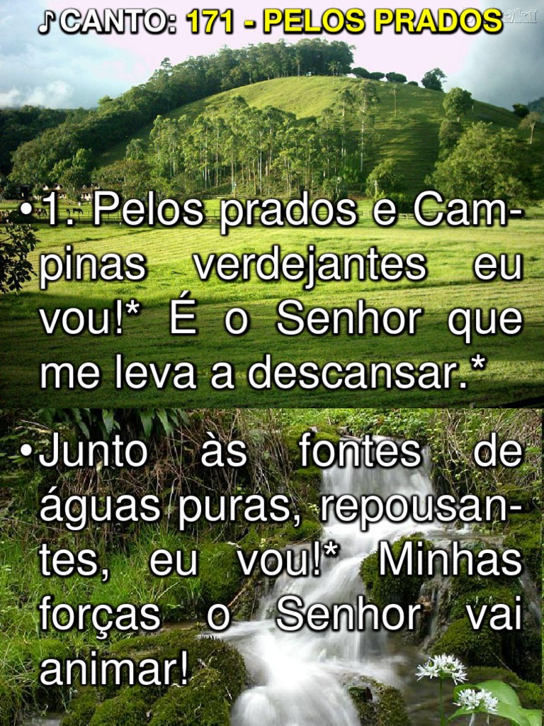 Pelos Prados E Campinas Musicas Catolicas Vagalume - Pelos prados e campinas verdejantes eu vou e o senhor que me leva a descansar junto as fontes de aguas puras repousantes eu vou minhas forcas o senhor vai animar.